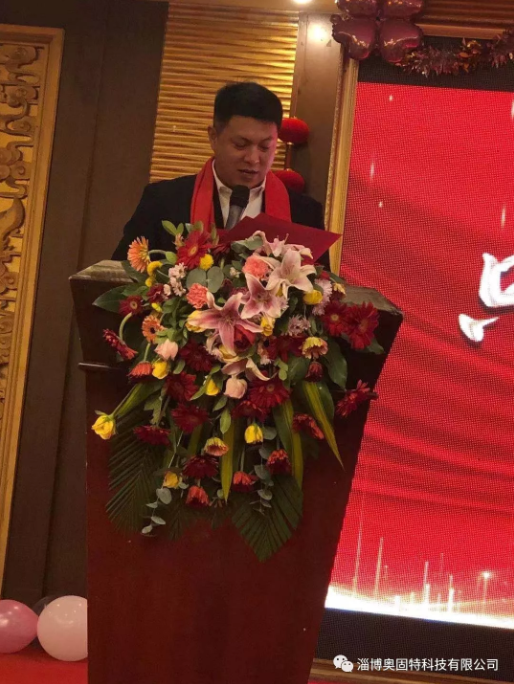 然后由淄博奧固特科技有限公司總經(jīng)理李春玉致新春賀辭,他代表公司感謝各位與公司同甘共苦的毅力,以及勇往直前的韌性,更要感謝各位對公司一如既往的支持和信任!并代表公司祝愿我們每一位奧固特人,在新的一年里工作順利!身體健康!闔家幸福!