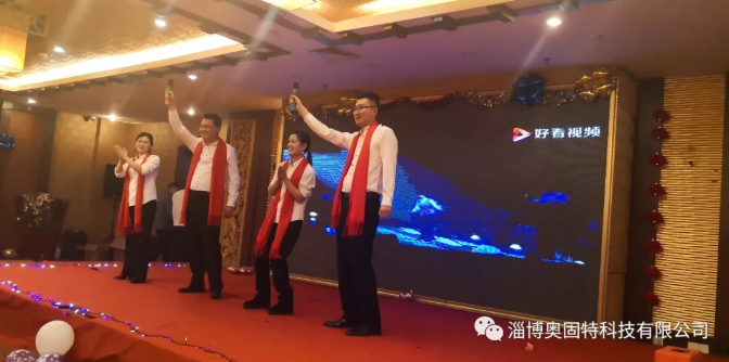 晚會開始首先由淄博奧固特科技有限公司執(zhí)行董事王總發(fā)表致辭,并宣布2020年度先進表彰暨迎新年會正式開始,她代表公司感謝各位在過去一年為公司做出的貢獻和努力,并向全體員工致以親切的問候和新年的祝福。