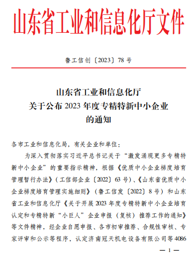 省工業(yè)和信息化廳認(rèn)定,專注于細(xì)分市場、掌握關(guān)鍵核心技術(shù)、創(chuàng)新能力強、市場占有率高、質(zhì)量效益優(yōu),在專業(yè)化、精細(xì)化、特色化、新穎化等方面表現(xiàn)突出的中小企業(yè)。這一稱號的獲得,充分體現(xiàn)了
